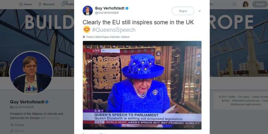 Brexit – Il tweet di Guy Verhofstadt (Gruppo ALDE) Posted on 21 June 2017 Serie TANTO DI CAPPELLO! opinioni onlineRosebud Arts Critique JournalismSatirasatira politica