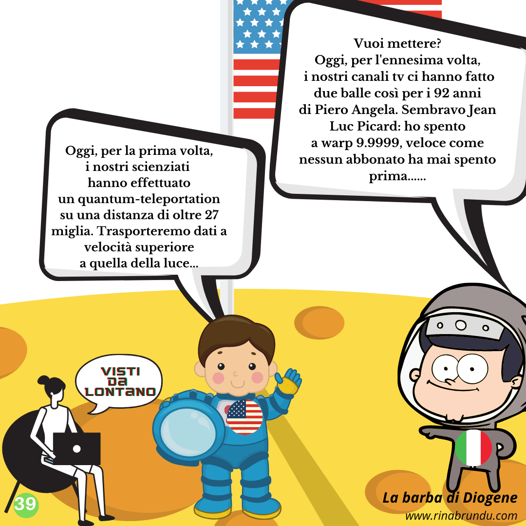 Quantum teleportation: c’é scienza e scienza… Posted on 22 December 2020 Visti da lontano – Tutte le vignette Perché “Visti da lontano”? VISTI DAL DAILYMAIL Visti da lontano – Tutte le vignette Perché “Visti da lontano”? Una carrellata delle ultime pillole goliardiche… Telemeloni In morte di Bruno Pizzul Riposizionamento Quello che i ragazzi non dicono Stigazzi!! Omaggio al grande popolo russo L’insostenibile pesantezza dell’Essere Quando basta un solo Righeira… Dopo l’epocale discorso del vice presidente Vance a Monaco… Decadimento di neutrino intergalattico ad alta energia