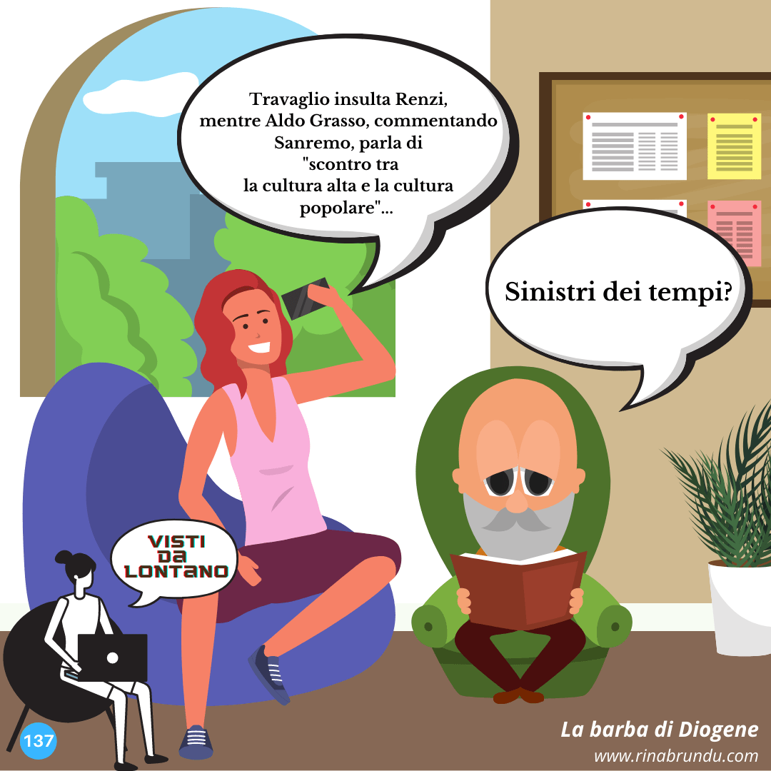 Tu quoque, Aldo, fili mii? Posted on 4 February 2021 Visti da lontano – Tutte le vignette Perché “Visti da lontano”? VISTI DA LIBERO E DAL CORRIERE Visti da lontano – Tutte le vignette Perché “Visti da lontano”? Una carrellata delle ultime pillole goliardiche… Telemeloni In morte di Bruno Pizzul Riposizionamento Quello che i ragazzi non dicono Stigazzi!! Omaggio al grande popolo russo L’insostenibile pesantezza dell’Essere Quando basta un solo Righeira… Dopo l’epocale discorso del vice presidente Vance a Monaco… Decadimento di neutrino intergalattico ad alta energia
