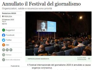 Non tutto il Coronavirus vien per nuocere (2) – Annullato il Festival del Giornalismo… [...] 1 March 2020