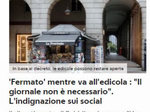Follie dei tempi. Con la tipologia di stampa piegata che abbiamo, si reca in edicola a comprare il giornale: fermato! [...] 14 March 2020